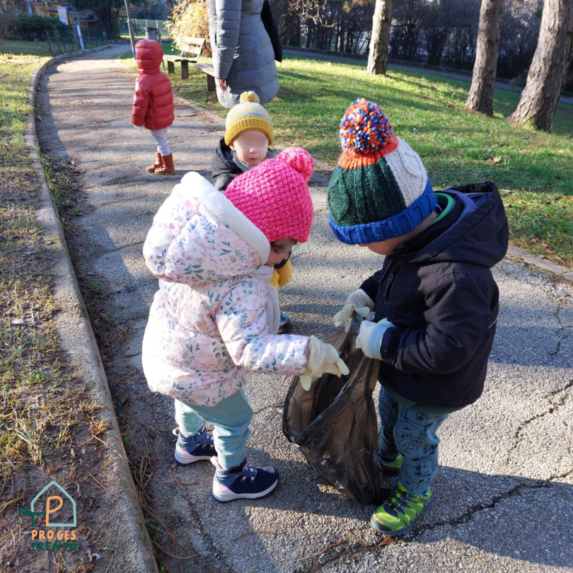 Durante le uscite nel quartiere, i bambini – in particolare i più grandi del nido – osservano l’ambiente, individuano i rifiuti abbandonati e li raccolgono in sicurezza, sperimentando gesti concreti di rispetto e responsabilità. Le educatrici accompagnano l’esperienza con intenzionalità pedagogica, favorendo la consapevolezza dell’ambiente come bene comune, stimolando la curiosità attraverso l’osservazione diretta e promuovendo comportamenti sostenibili.